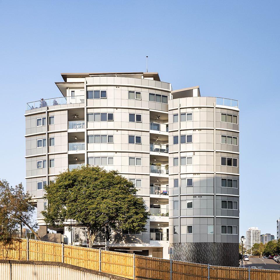 Residential high rise units in the busy intersection of Milton Road and Roma Street.