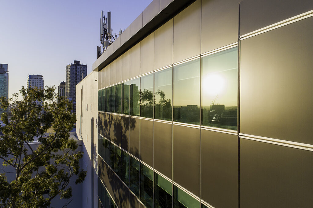 The removal of combustible cladding and reclad of aluminium facades, featuring: – Aodeli NCP Charcoal Grey, White Matt Pure and Medium Bronze