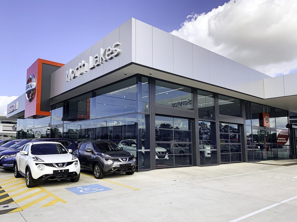 The showrooms for Holden, Renault and Nissan, feature: - feature panels in Alucabond Plus - feature panes in Fairview Vitrabond - Alucobond plus Red, white silver and anthresite grey - Painted CFC soffits